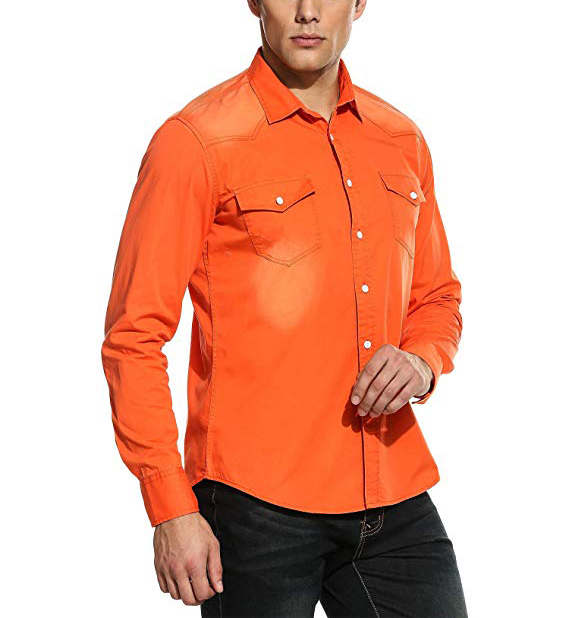 Mens Casual Contrast Long Sleeve Button Down Dress Shirts