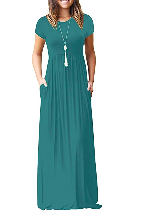 Women's Short Sleeve Loose Plain Maxi Dresses Casual Long Dresses With Pockets