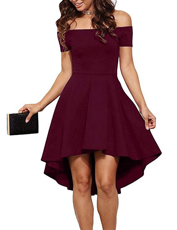 Womens Off The Shoulder Short Sleeve High Low Cocktail Skater Dress