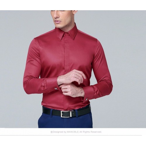 • Men's Dress Shirt Cotton New Regular Fit Cufflink Shirts Business Long Sleeve Business Suits Shirts Solid Color