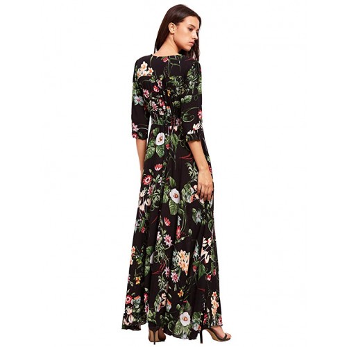 Women's Button up Split Floral Print Flowy Party Maxi Dress